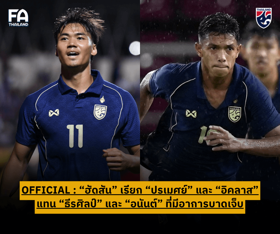 แอนโธนี ฮัดสัน เรียก "อิคลาส-ปรเมศย์" แทนที่ อนันต์-ธีรศิลป์ ที่มีอาการบาดเจ็บ