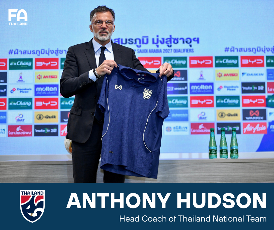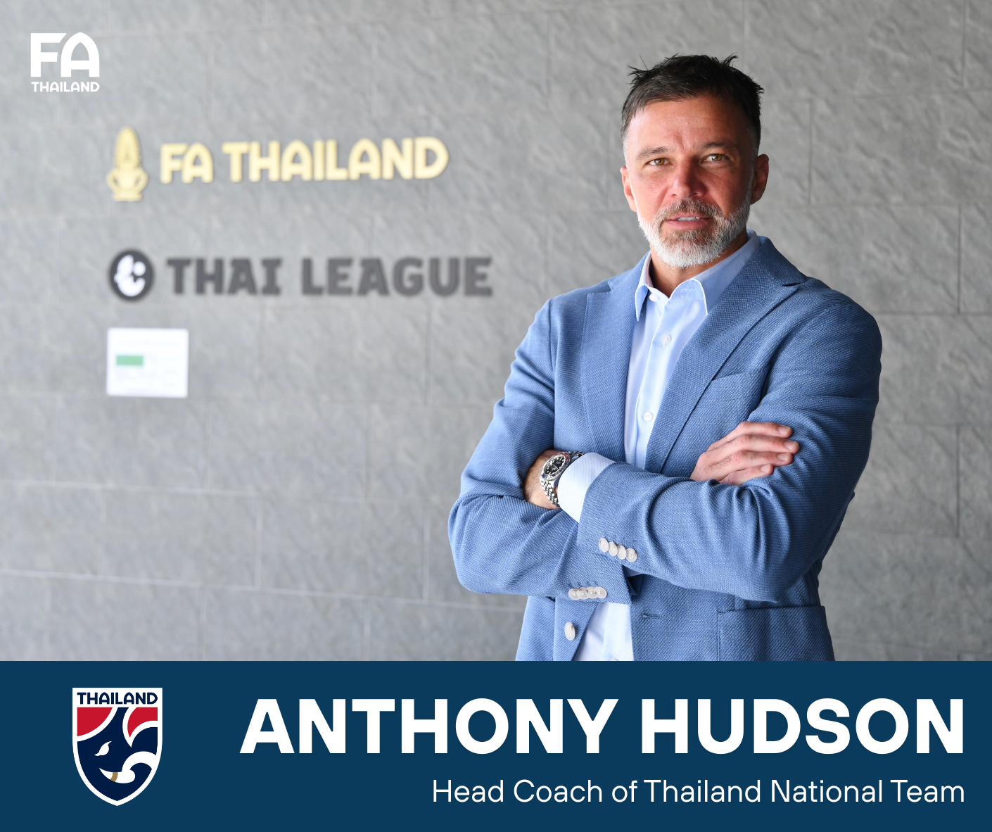 สมาคมกีฬาฟุตบอลแห่งประเทศไทย ในพระบรมราชูปถัมภ์ ประกาศแต่งตั้ง แอนโธนี ฮัดสัน เป็นหัวหน้าผู้ฝึกสอนฟุตบอลชายทีมชาติไทย โดยจะเริ่มงานทันที