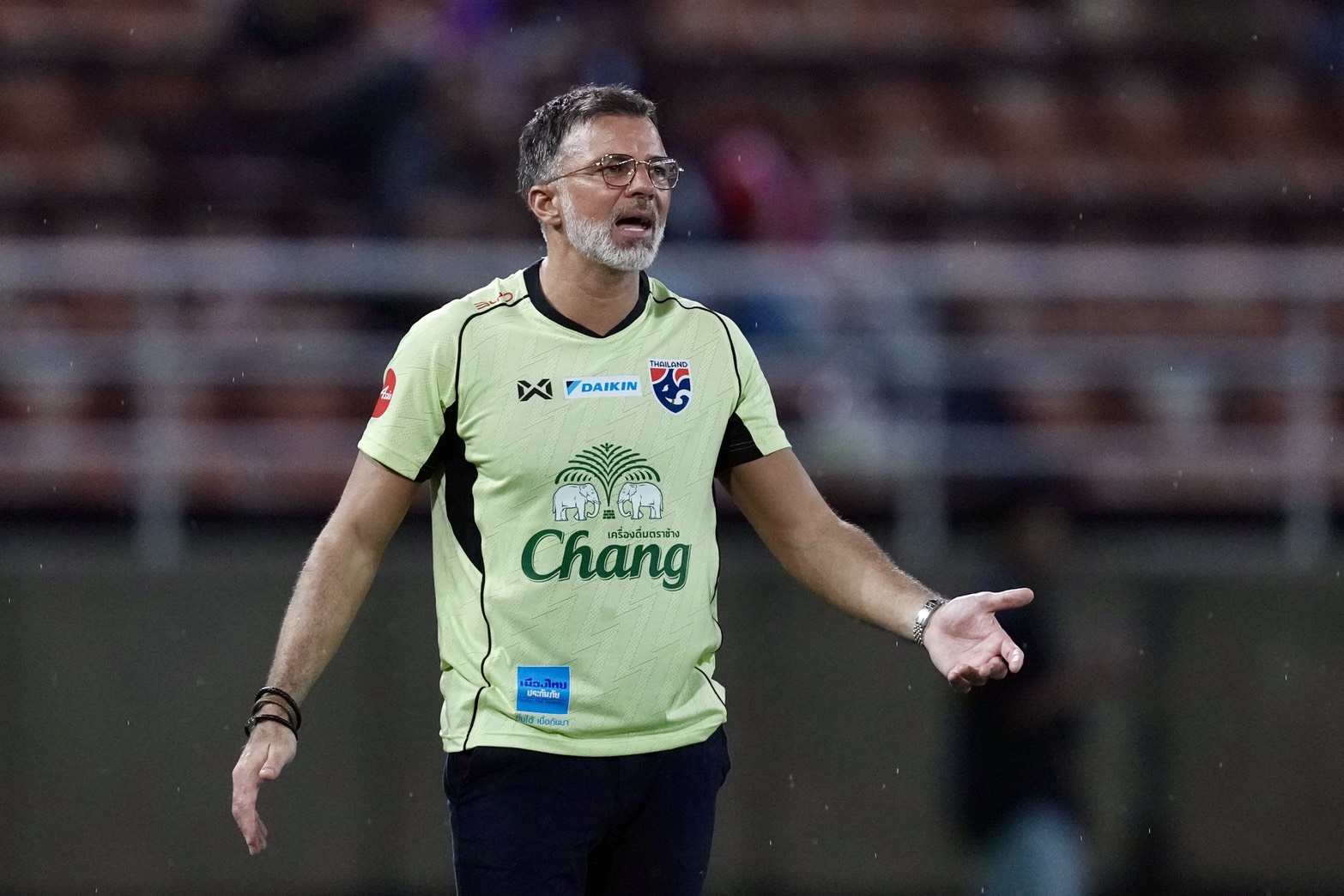 แอนโธนี ฮัดสัน หัวหน้าผู้ฝึกสอนฟุตบอลชายทีมชาติไทย ให้สัมภาษณ์หลังการแข่งขันฟุตบอลอุ่นเครื่องตามปฏิทิน ฟีฟ่า เดย์ รายการ International Match ณ ธรรมศาสตร์ สเตเดียม เมื่อวันที่ 13 พฤศจิกายน 2568