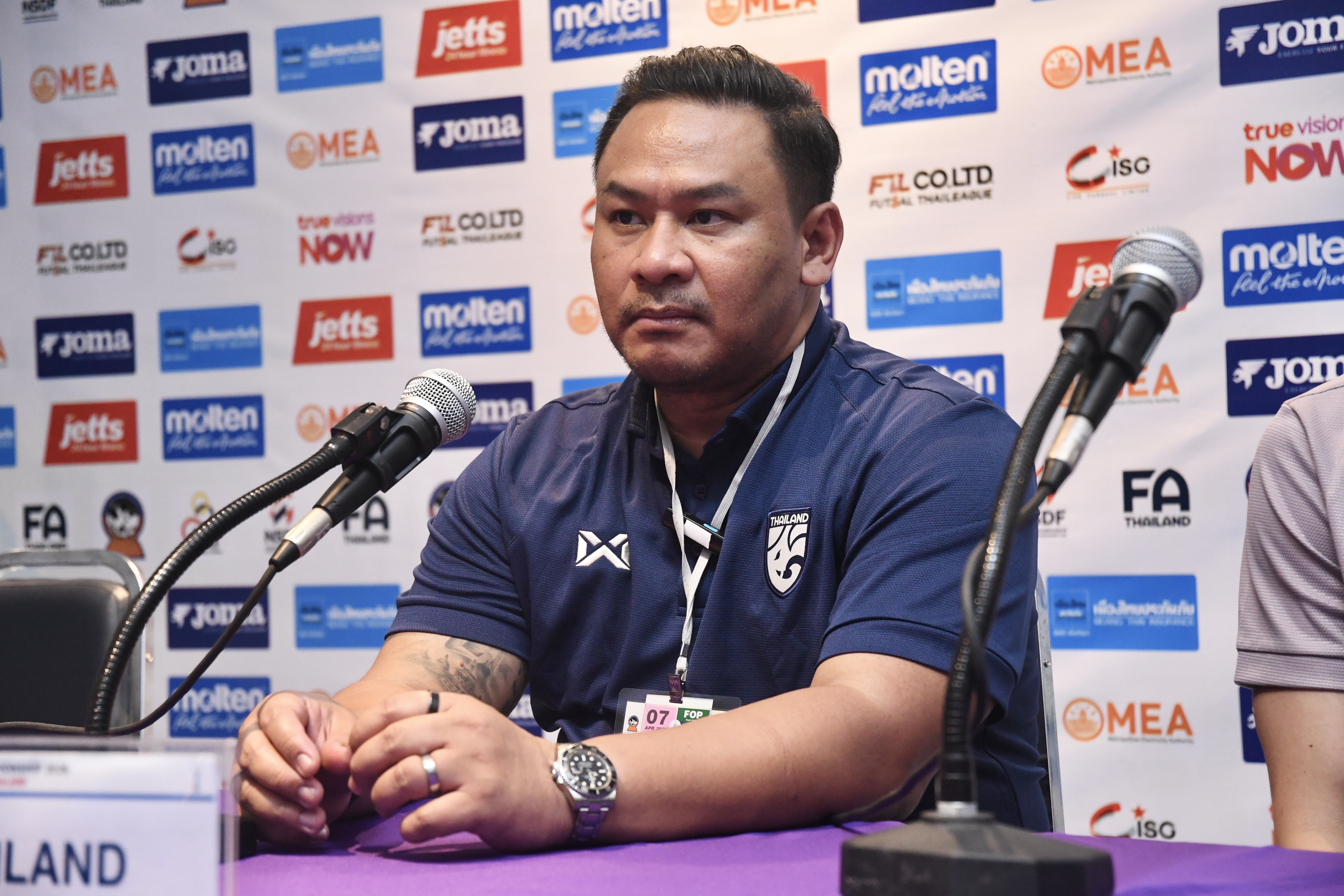 รักษ์พล สายเนตรงาม หัวหน้าผู้ฝึกสอน ฟุตซอลชายทีมชาติไทย ให้สัมภาษณ์หลังการแข่งขันฟุตซอลชิงแชมป์อาเซียน 2026 รอบแบ่งกลุ่ม กลุ่มเอ นัดที่สอง
