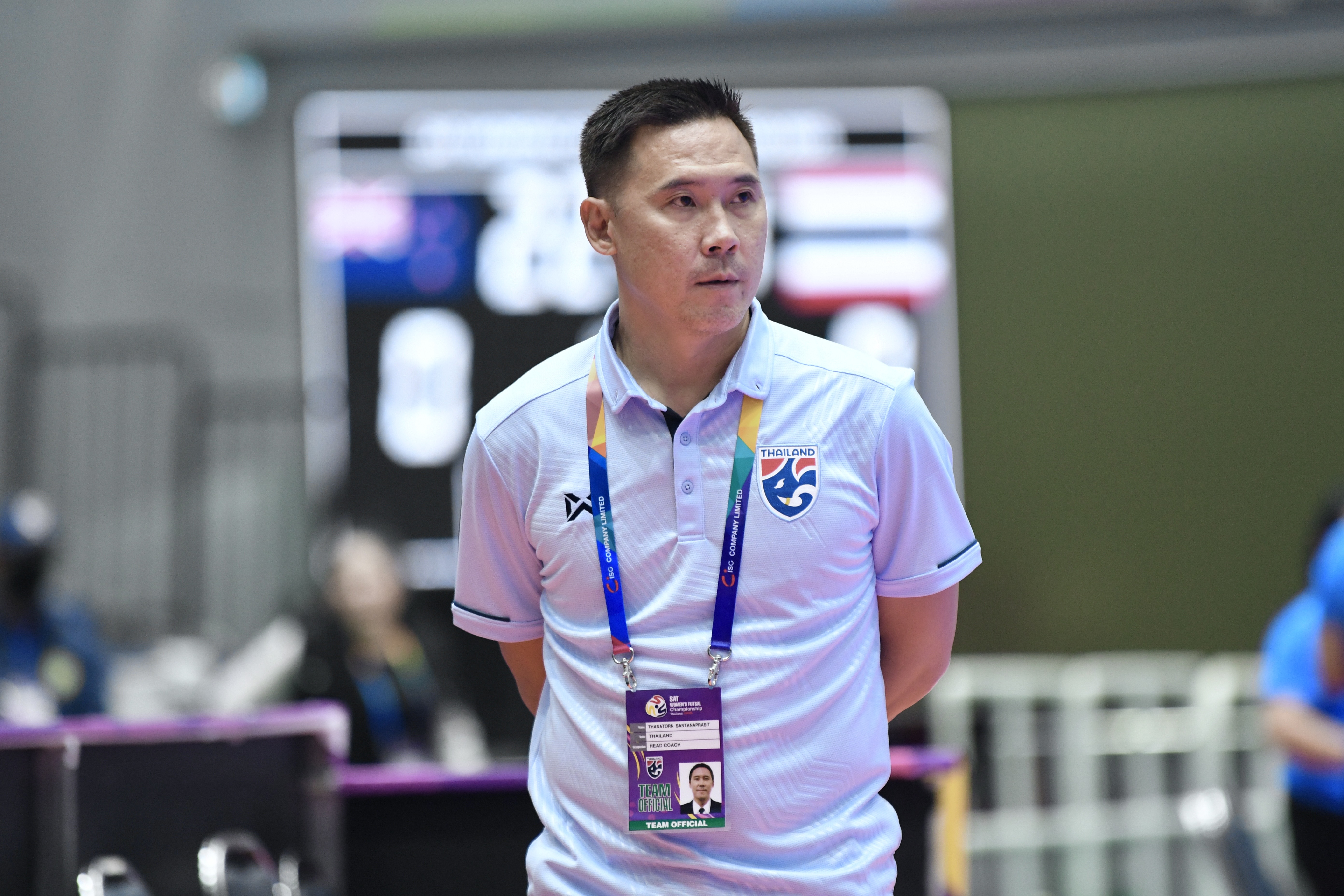 ธนาธร สันทนาประสิทธิ์ หัวหน้าผู้ฝึกสอน ฟุตซอลหญิงทีมชาติไทย ให้สัมภาษณ์หลังการแข่งขัน SAT Women’s Futsal Championship Thailand 2025 นัดแรก