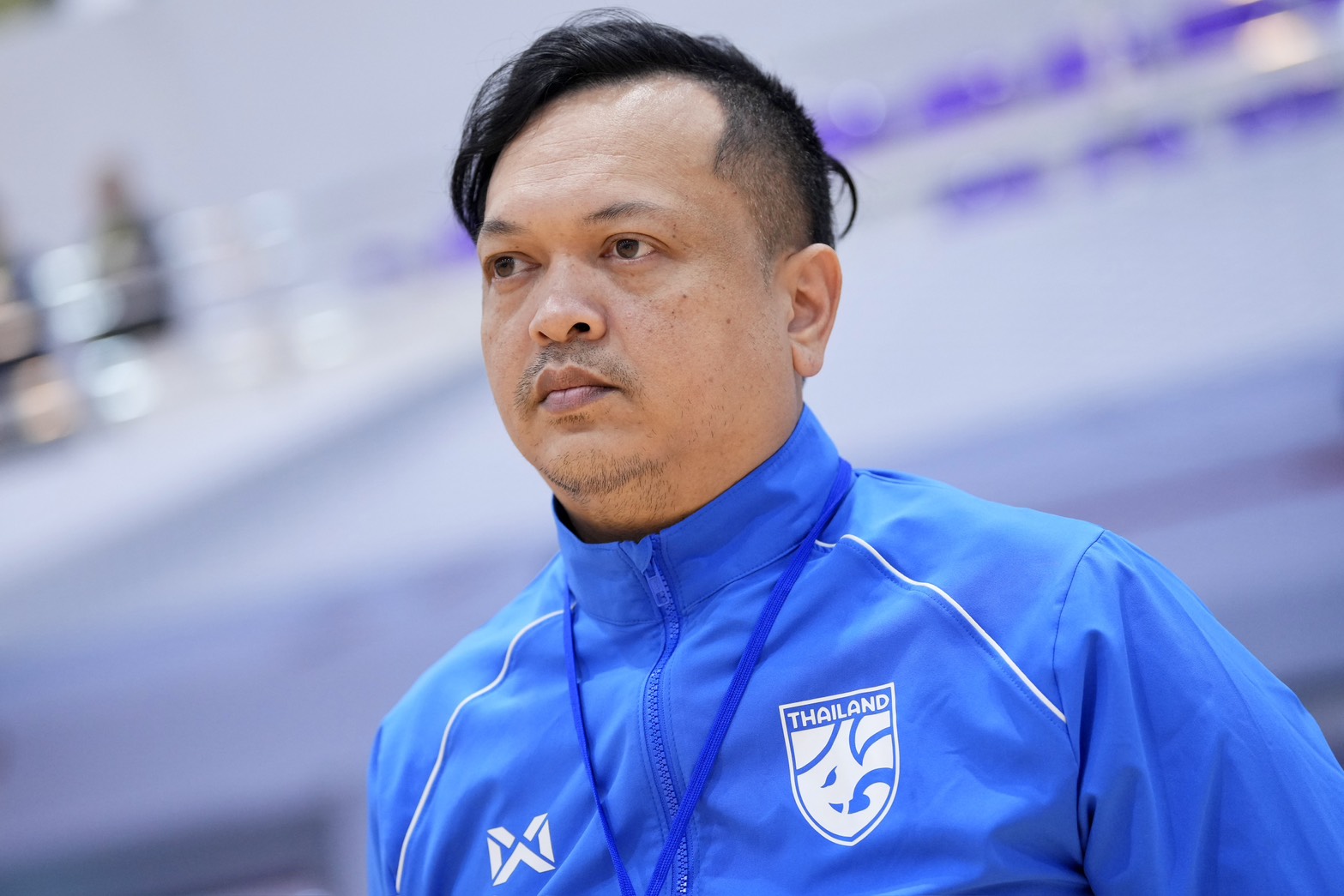 ภัฎ ศรีวิจิตร หัวหน้าผู้ฝึกสอน ฟุตซอลชายทีมชาติไทยรุ่นอายุไม่เกิน 16 ปี ให้สัมภาษณ์หลังการแข่งขันฟุตซอลชิงแชมป์อาเซียน รุ่นอายุไม่เกิน 16 ปี 2025 นัดที่สี่