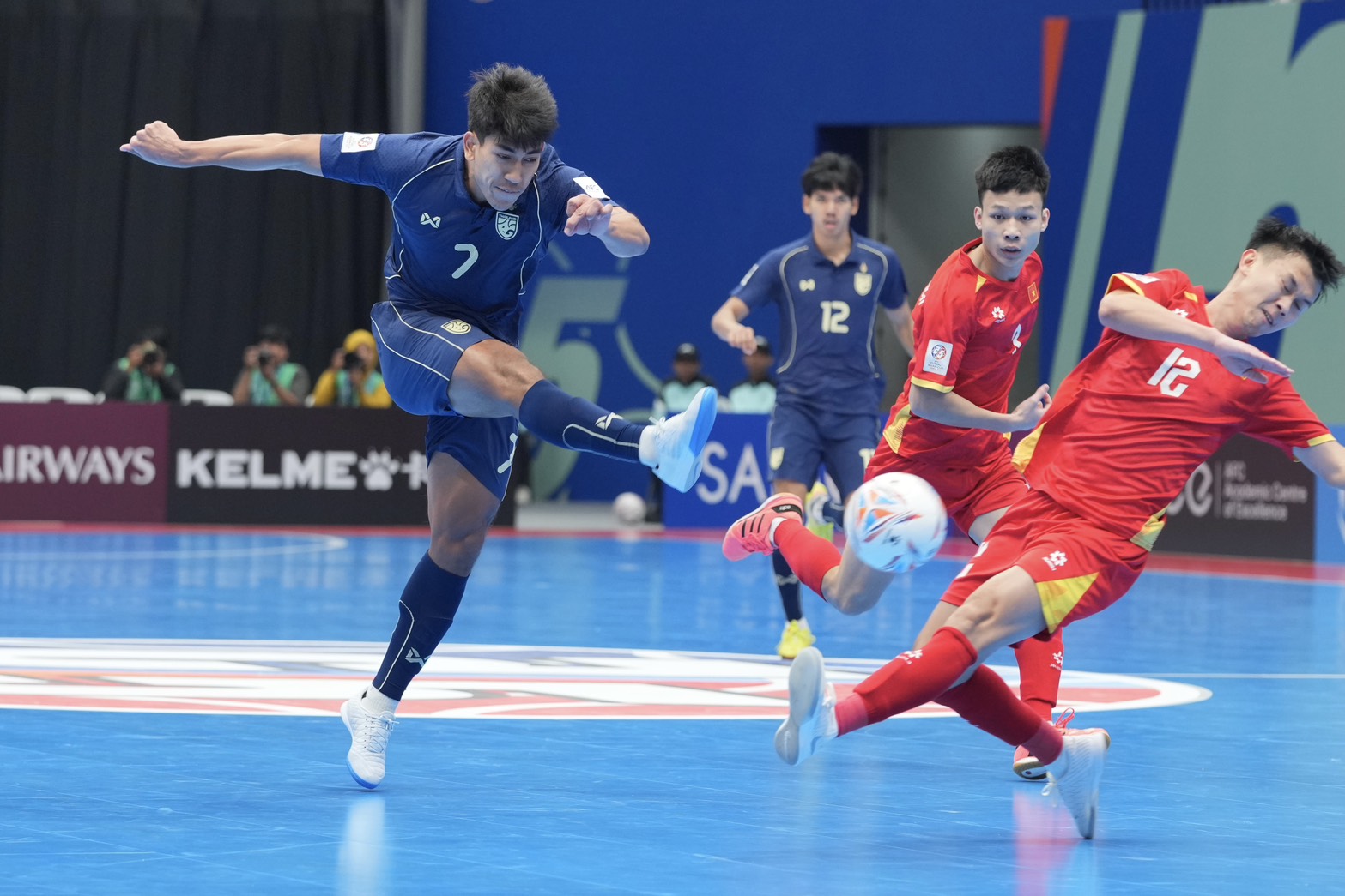 นาทีที่ 5 เวียดนามได้ลุ้นครั้งแรกจาก วู งอค อัน แต่ลูกยิงยังไปติดเซฟของ อรุษ เส็นบัตร