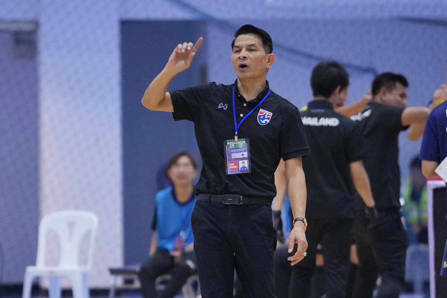 บุญเลิศ เจริญวงศ์ หัวหน้าผู้ฝึกสอน ฟุตซอลชายทีมชาติไทย รุ่นอายุไม่เกิน 19 ปี ให้สัมภาษณ์หลังการแข่งขันฟุตซอลชิงแชมป์อาเซียน รุ่นอายุไม่เกิน 19 ปี 2025 รอบชิงชนะเลิศ