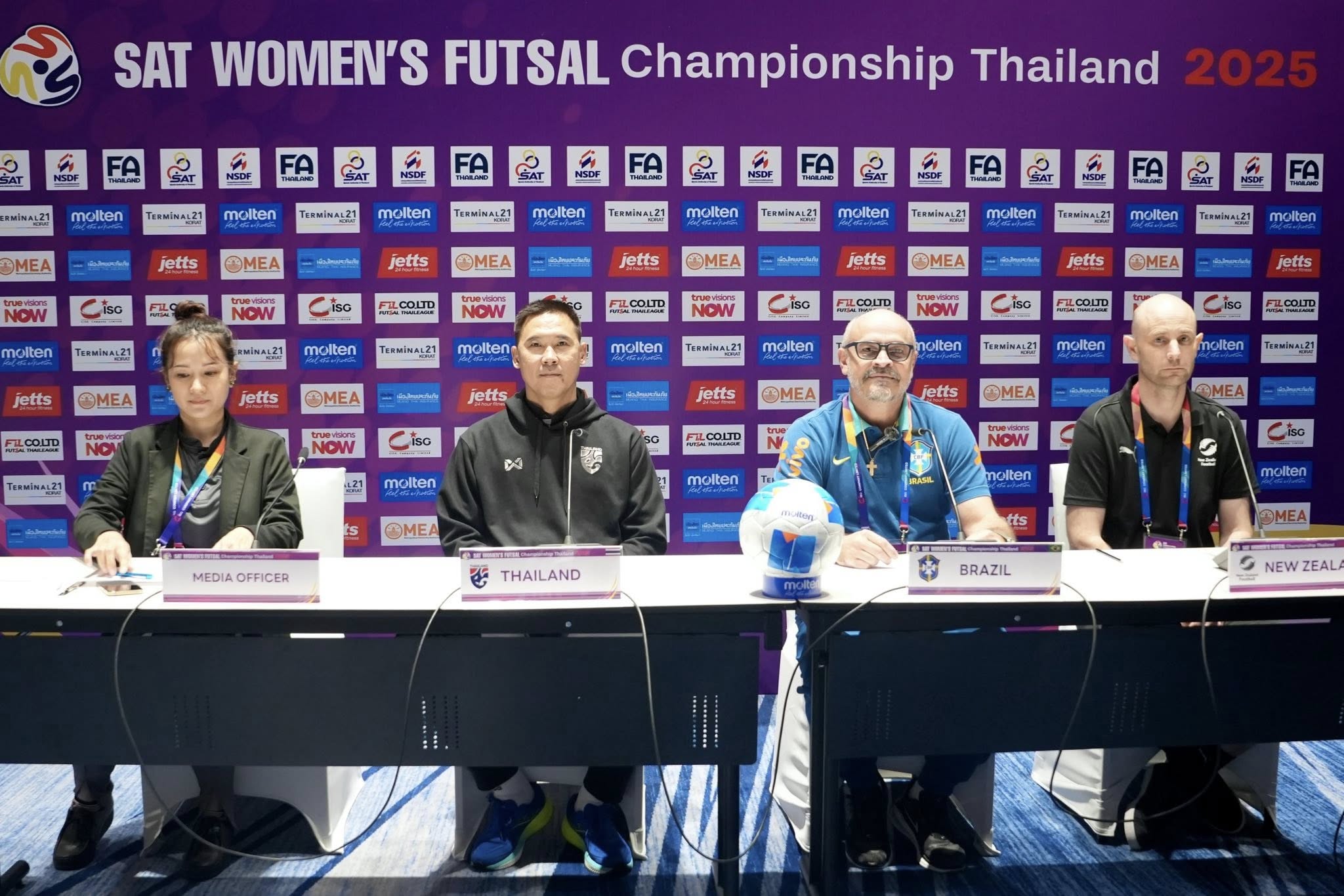 ในงานแถลงข่าวนำโดย “โค้ชโอ” ธนาธร สันทนาประสิทธิ์ หัวหน้าผู้ฝึกสอนฟุตซอลหญิงทีมชาติไทย พร้อมด้วย หัวหน้าผู้ฝึกสอนฟุตซอลหญิงของ นิวซีแลนด์ และ บราซิล
