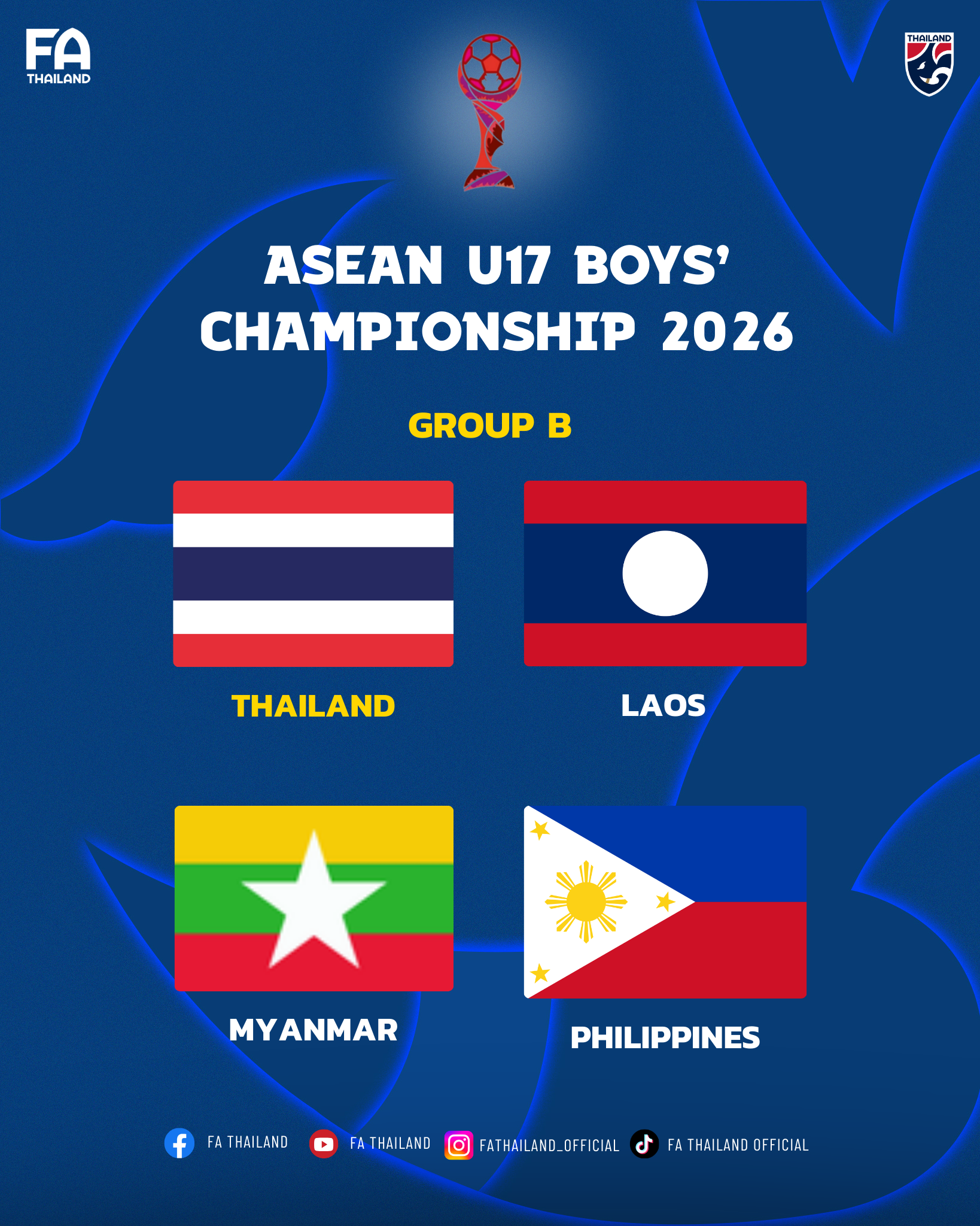 #FAThailand #ฟุตบอลทีมชาติไทย #ทีมชาติไทยU16 #ฟุตบอลชิงแชมป์อาเซียน #ฟุตบอลชิงแชมป์อาเซียนU17 #ASEANU17Boys'Championship2026
