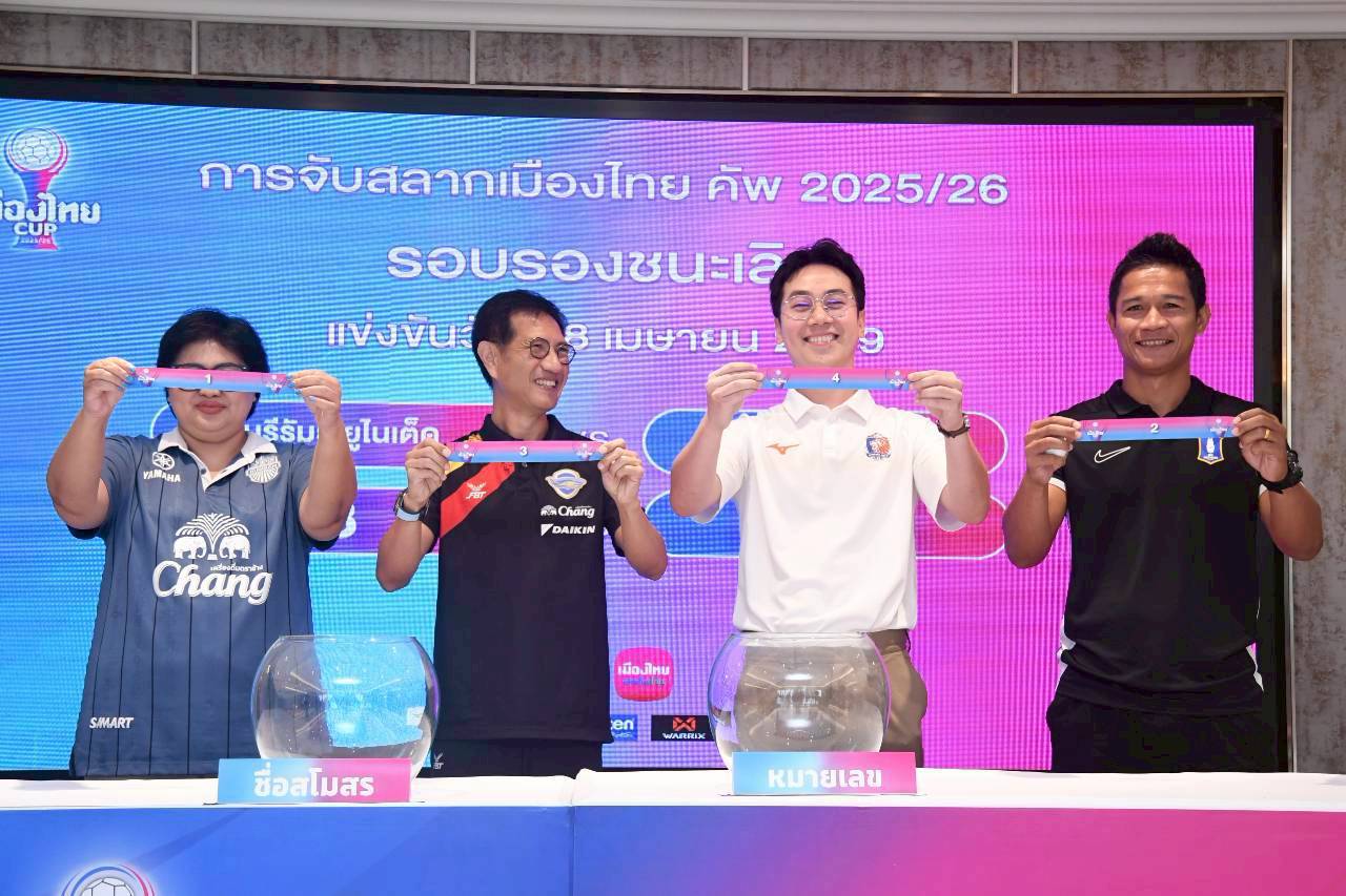 วันที่ 24 มีนาคม 2569 เวลา 14.00 น. ณ. ห้องประชุมเมืองไทยประกันภัย อาคารเมืองไทยภัทร คอมเพล็กซ์ “Tower A” ชั้น 14 สมาคมกีฬาฟุตบอลแห่งประเทศไทยฯ จัดพิธีจับสลากประกบคู่การแข่งขันฟุตบอล เมืองไทย คัพ ฤดูกาล 2025/26 รอบรองชนะเลิศ