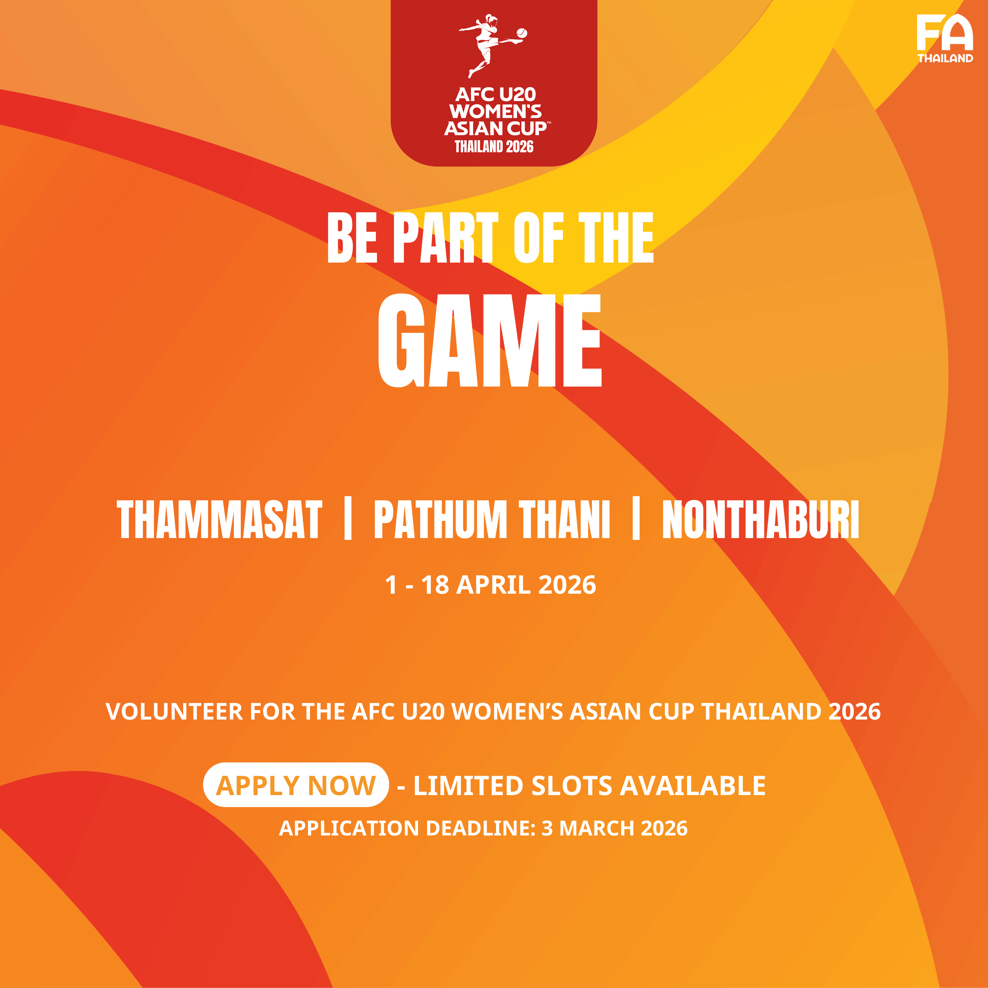 Call for volunteers! Be part of the game by joining the AFC U20 Women’s Asian Cup Thailand 2026