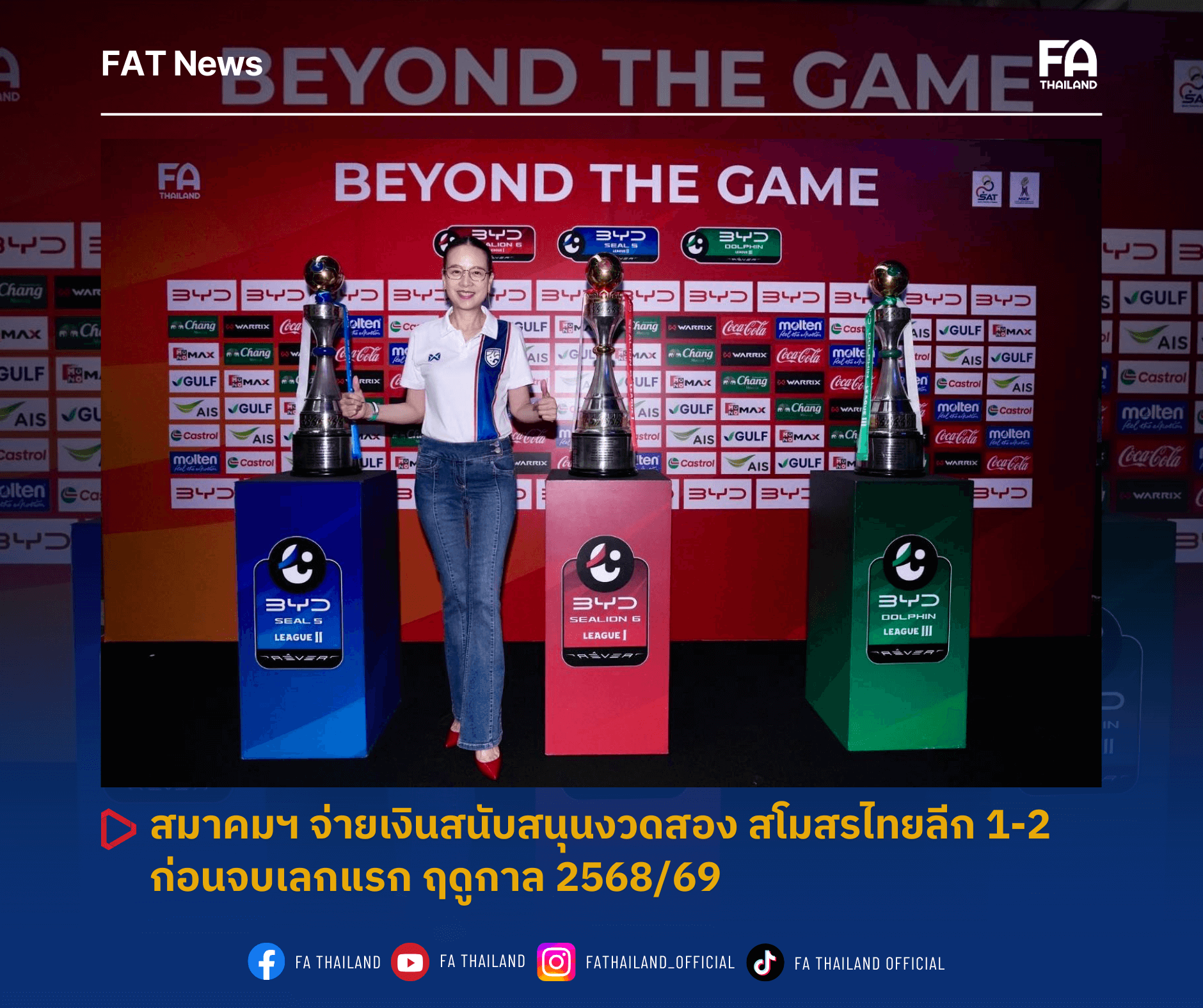 สมาคมฯ จ่ายเงินสนับสนุนงวดสอง ให้กับ สโมสรใน ไทยลีก 1-2 ก่อนจบเลกแรก ฤดูกาล 2568/69