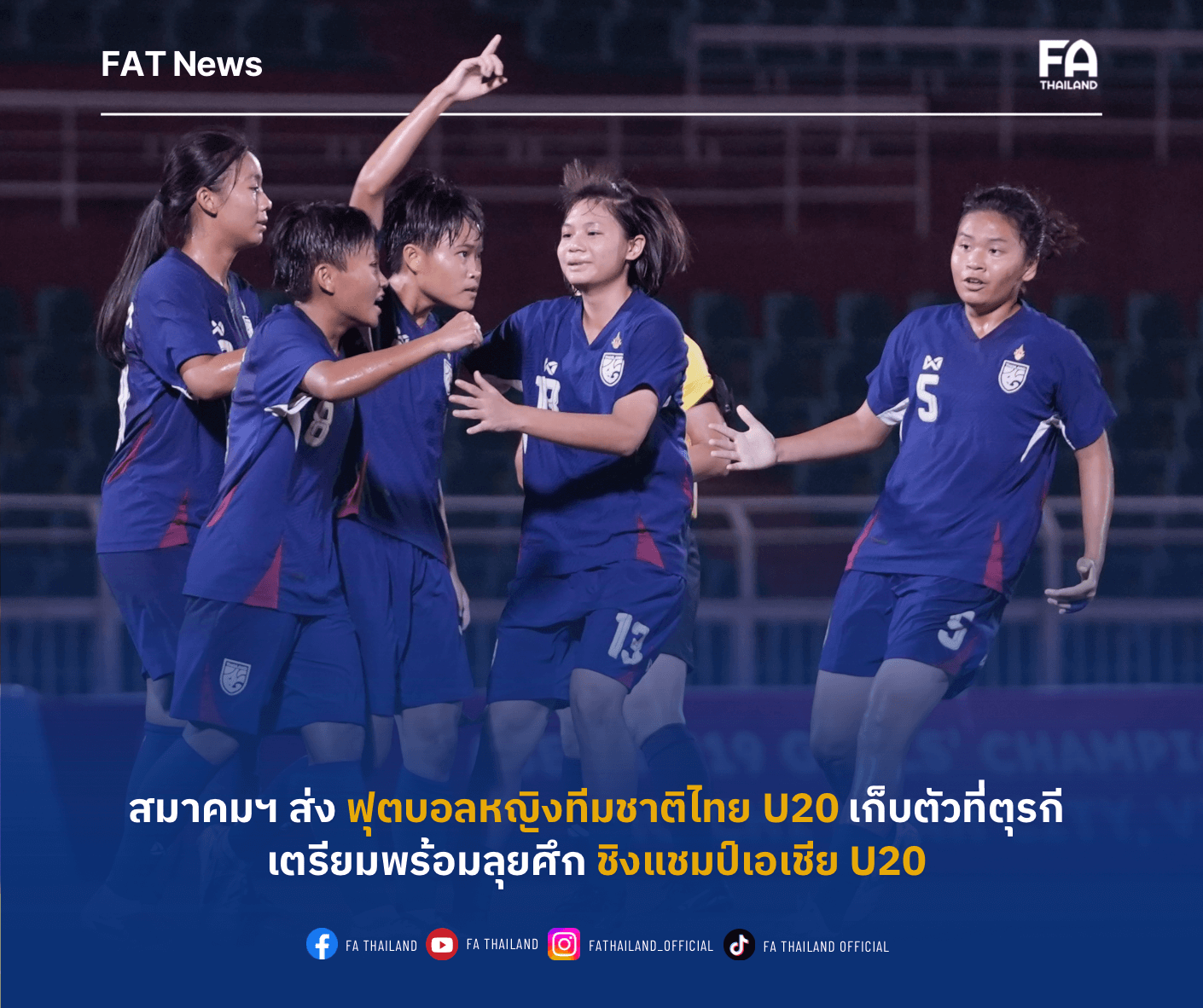 สมาคมฯ ส่ง “ฟุตบอลหญิงทีมชาติไทย U20” เก็บตัวที่ตุรกี เตรียมพร้อมลุยศึกชิงแชมป์เอเชีย U20