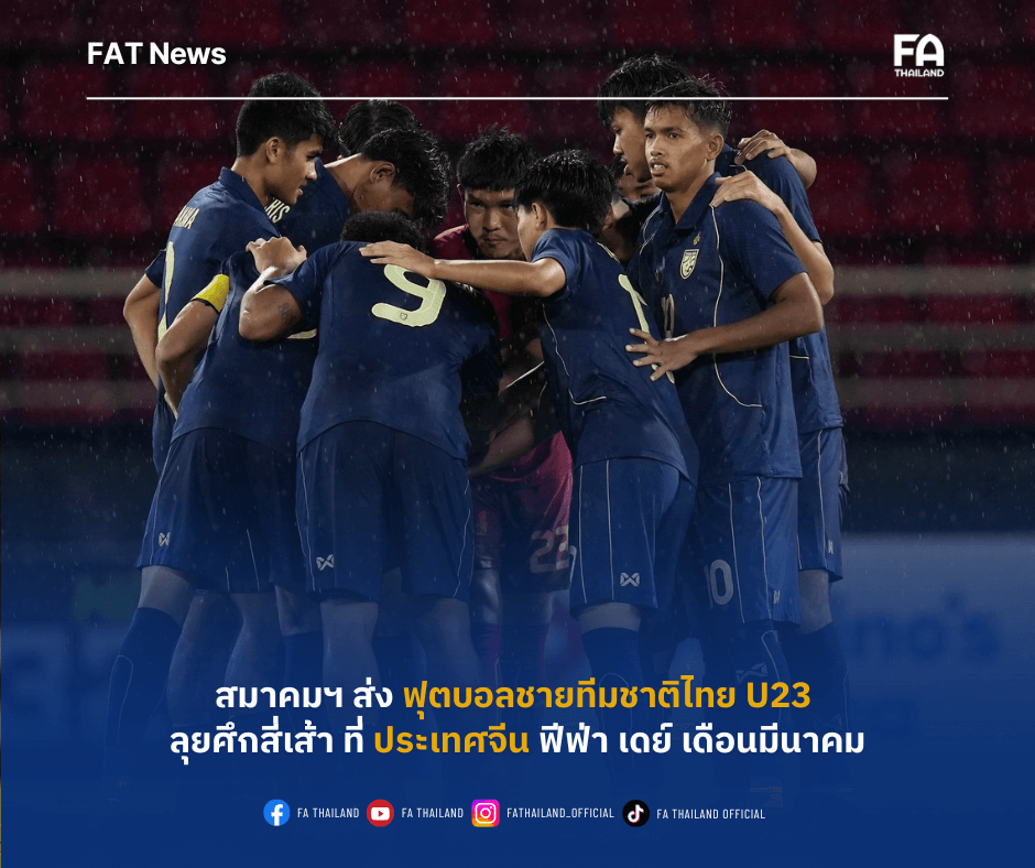 สมาคมฯ ตอบรับส่ง ทีมชาติไทย U23 ร่วมแข่งขัน อุ่นเครื่อง รายการ 4 เส้าที่เมือง ซีอาน สาธารณรัฐประชาชนจีน