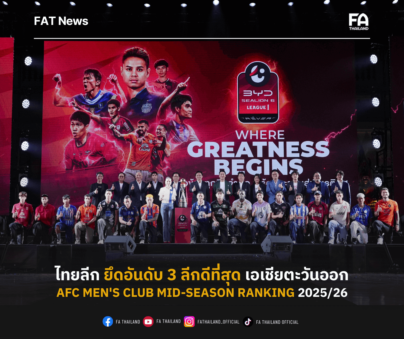 ไทยลีก ยึดอันดับ 3 ลีกดีสุดเอเชียตะวันออก AFC Men's Club Mid-Season Ranking 2025/26