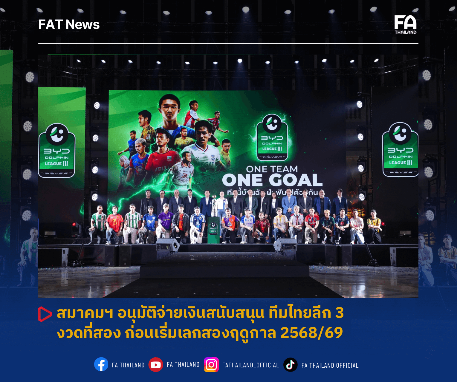 สมาคมฯ อนุมัติจ่ายเงินสนับสนุน ทีมไทยลีก 3 งวดที่สอง ก่อนเริ่มเลกสองฤดูกาล 2568/69
