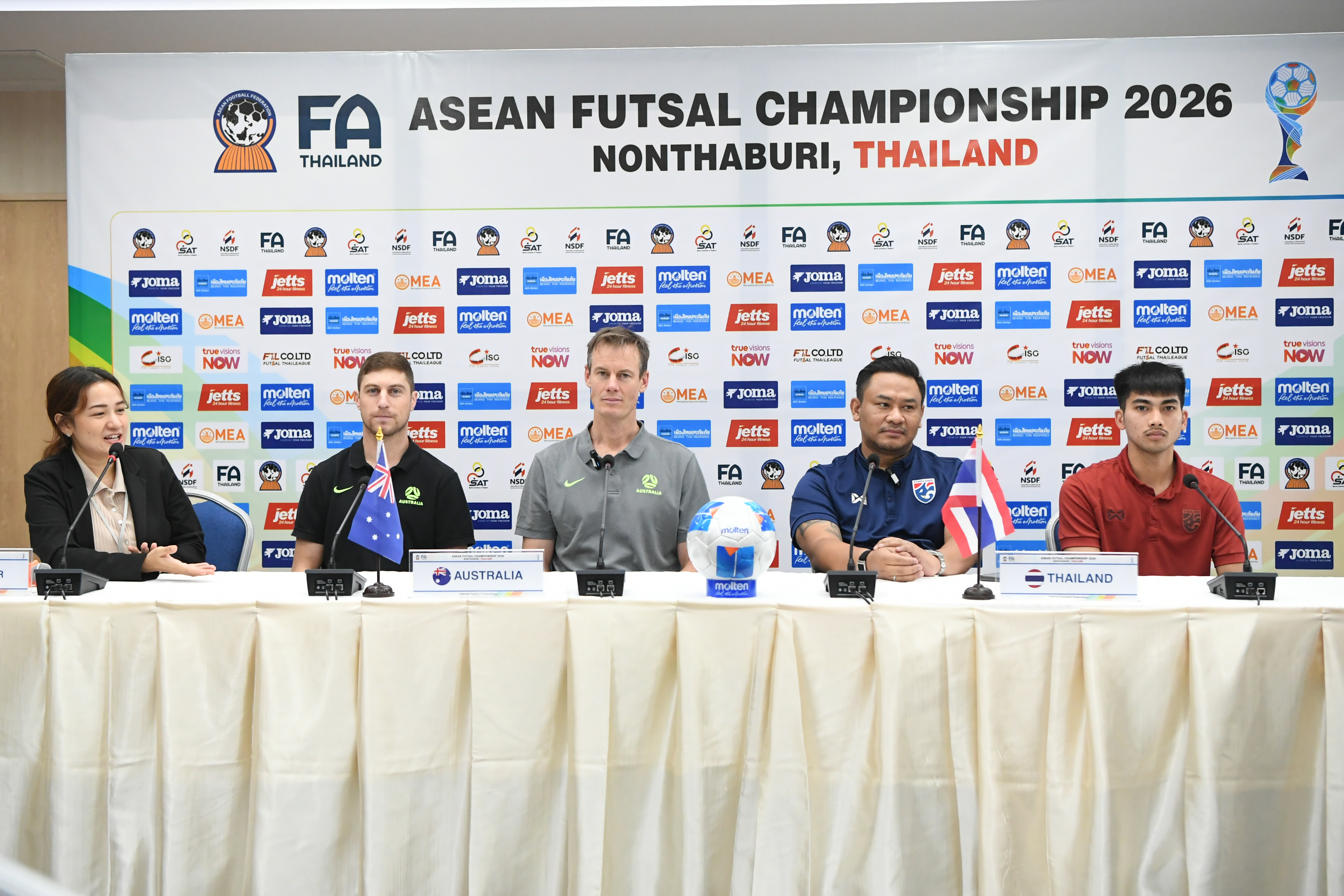 วันที่ 9 เมษายน 2569 ณ ริเวอร์ไรน์เพลส โฮเทล แอนด์ เรสซิเดนซ์ จังหวัดนนทบุรี สหพันธ์ฟุตบอลอาเซียน หรือ เอเอฟเอฟ จัดงานแถลงข่าวก่อนการแข่งขันฟุตซอลชิงแชมป์อาเซียน 2026 (ASEAN Futsal Championship 2026) รอบรองชนะเลิศ คู่ระหว่าง ฟุตซอลชายทีมชาติไทย พบกับ ออสเตรเลีย