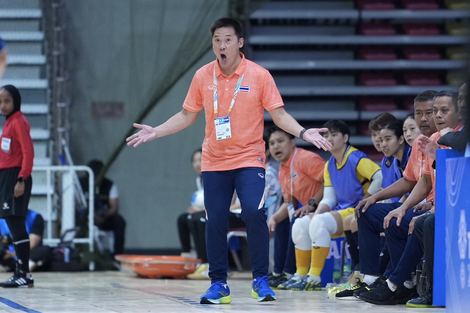 ธนาธร สันทนาประสิทธิ์ หัวหน้าผู้ฝึกสอน ฟุตซอลหญิงทีมชาติไทย ให้สัมภาษณ์หลังการแข่งขันฟุตซอลหญิงในมหกรรมซีเกมส์ ครั้งที่ 33 กลุ่มเอ นัดแรก