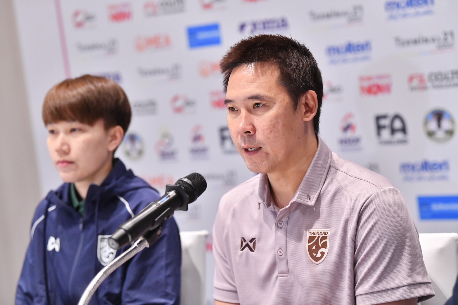 การแถลงข่าวครั้งนี้ นำโดย 4 ชาติที่ผ่านเข้ารอบรองชนะเลิศ ประกอบด้วย ไทย แชมป์กลุ่มเอ, อินโดนีเซีย รองแชมป์กลุ่มเอ, ออสเตรเลีย แชมป์กลุ่มบี และ เวียดนาม รองแชมป์กลุ่มบี โดยทีมชาติไทย ส่ง "โค้ชโอ" ธนาธร สันทธาประสิทธิ์ หัวหน้าผู้ฝึกสอนฟุตซอลหญิงทีมชาติไทย พร้อมด้วย ดาริกา เพียรภายลุน กัปตันทีมเข้าร่วมการแถลงข่าว