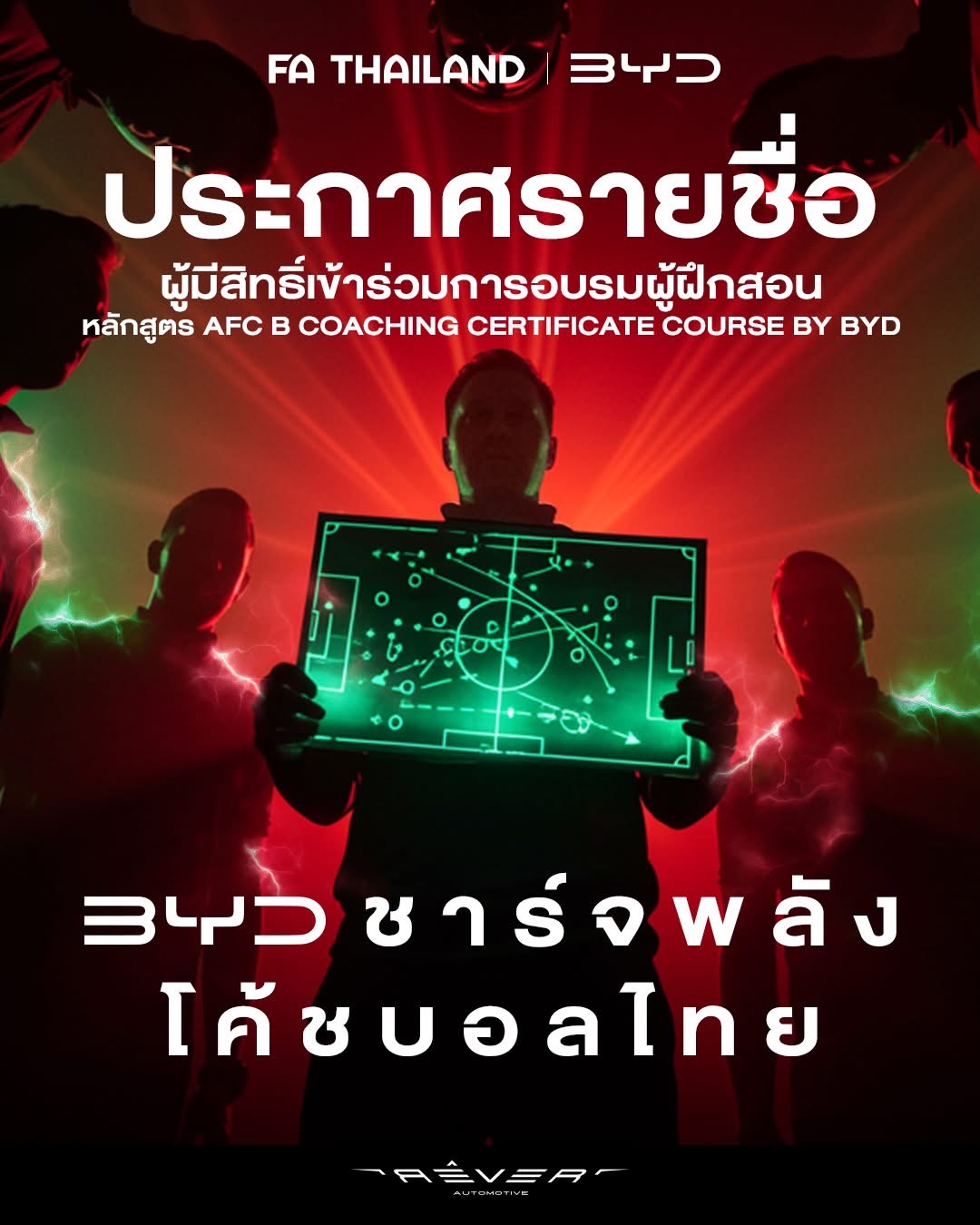 ประกาศ : รายชื่อ 24 ผู้ฝึกสอน หลักสูตร AFC B Coaching Certificate Course by BYD